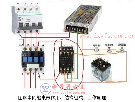 中间继电器就是一个继电器,它的原理和交流接触器一样,都是由固定铁芯、动铁芯、弹簧、动触点、静触点、线圈、接线端子和外壳组成。