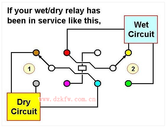 这就提出了一个有关设备维护和维修问题。如果你有一个插入式继电器的触点标定为可同时满足湿式或干式开关服务,然后在进行某些设备维护或维修时,你允许图2这种情况发生。