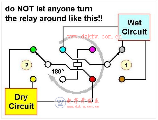 触点2最初用于湿式开关,如果将其换为用于干式电路,因其用于干式开关的适用性业已消失,有很大几率会发生故障。要确保此类继电器在其产品的整个使用周期,都要保持为最初安装的位置。