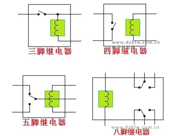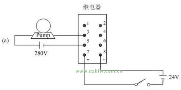 不同的继电器接线方法会有些差异。下面介绍的是8个接线端子的接线方法。