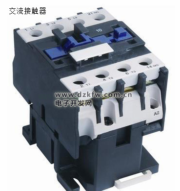上图是一只电磁式交流接触器。图中的1(L1)、2(L2)、3(L3)、4(T1)、5(T2)、6(T3)是主触点,其1和2是一对,3和4是一对,5和6是一对,共三对主触点,由于大多数交流电机都是三相的(当然也有单相的,一般是小功率电机)。上端的L1、L2、L3接进线端,下端的T1、T2、T3接出线端。21和14是一对辅助触点,旁边标的NO是表示常开点,NC表示常闭点。上图中标的是NO,表示它自身带一对常开点。A1和A2是线圈两个出线端,A1一般在接触器的上端,图中没有拍出来。交流接触器常用的线圈电压有110V、220V和380V等,如果接触器上标的是220V的,就不能接380V的电源,否则会烧坏。常开是指接触器的线圈没有通电时,辅助触点是断开的,就叫常开,辅助触点是闭合的就叫常闭。