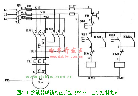 接触器联锁的正反控制线路 互锁控制电路