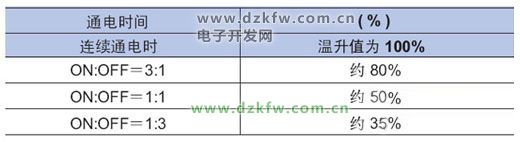 2.4.1 温升:在继电器动作过程中,线圈会发热使其温度升高。一般在接通时间为2分种以下的脉冲电压下使用时,线圈温升值与接通(ON)时间、及接通与断开(OFF)的比例有关,各种继电器基本相同,参见表1。