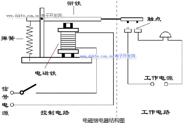 电磁继电器的工作原理传统的电磁继电器基本结构如图1所示,通常由电磁铁、衔铁、弹簧、触点(其中触点又分为静触点和动触点)四部分组成。当控制电路通电时,即给线圈两端加上一定的电压,线圈会产生一定的电流,因电磁效应电磁铁会产生一定的吸力从而使衔铁在克服弹簧的拉力作用下工作,触点吸合,工作电路导通;当线圈两端的电压消失时,弹簧因形变产生的恢复应力使触点断开,工作电路关断。因此,电磁继电器通过控制触点的吸合和释放来控制工作回路的开通和关断。