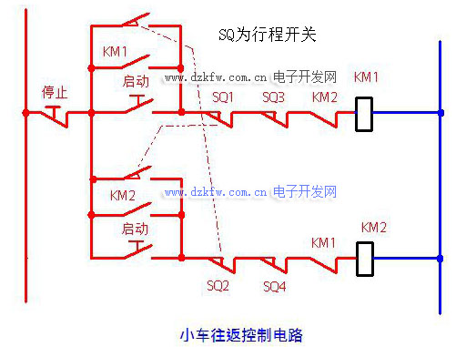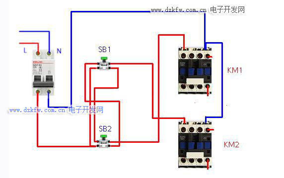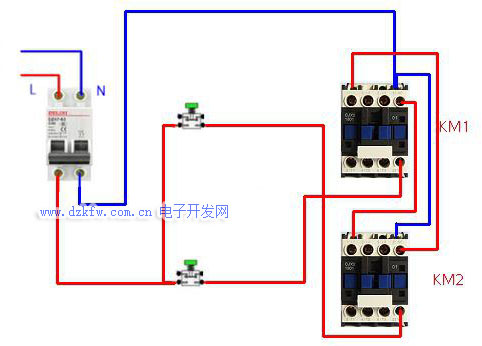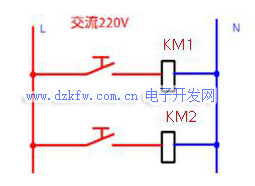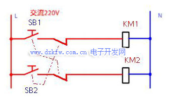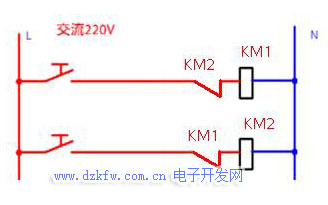 这个常用在接触器的正反转线路中,但是不够完美,因为未知的一些因素偶尔还是会发生短路故障。