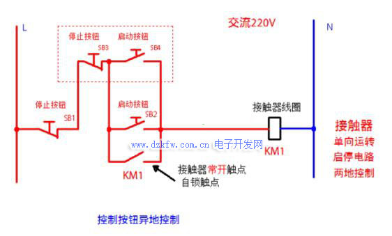 我们再讲下异地控制的技巧:停止按钮串联,启动按钮并联。