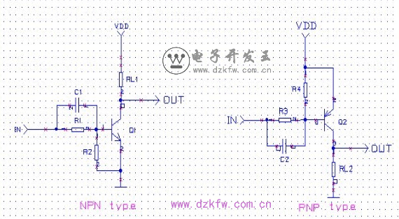 基本原理:当晶体管突然导通(IN信号突然发生跳变),C1瞬间短路,为三极管快速提供基极电流,这样加速了晶体管的导通。当晶体管突然关断(IN信号突然发生跳变),C1也瞬间导通,为卸放基极电荷提供一条低阻通道,这样加速了晶体管的关断。C通常取值几十到几百皮法。电路中R2是为了保证没有IN输入高电平时三极管保持关断状态;R4是为了保证没有IN输入低电平时三极管保持关断状态。R1和R3是基极电流限流用。