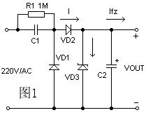 电容降压式简易电源的基本电路如图1 ,C1 为降压电容器,D2 为半波整流二极管,D1 在市电的负半周时给C1 提供放电回路,D3 是稳压二极管,R1 为关断电源后 C1 的电荷泄放电阻。在实际应用时常常采用的是图2 的所示的电路。当需要向负载提供较大的电流时,可采用图3 所示的桥式整流电路。