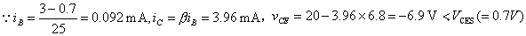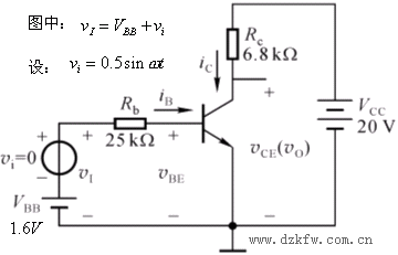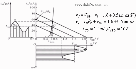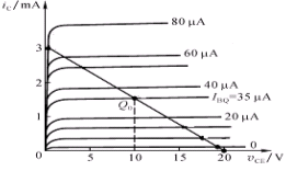 并将它作在输出特性曲线上,负载线与IBQ对应的输出特性相交于Q点,求得:![]()