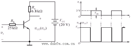 VI=0:三极管截止, iC=0,VO=20V;VI=3V:三极管饱和导电。