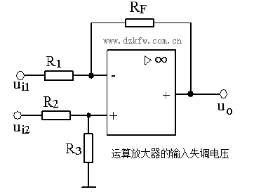 取RF=R3=100kΩ,R1=R2=100Ω,将Ui1和Ui2同时接地,Uo/1001就是输入失调电压。