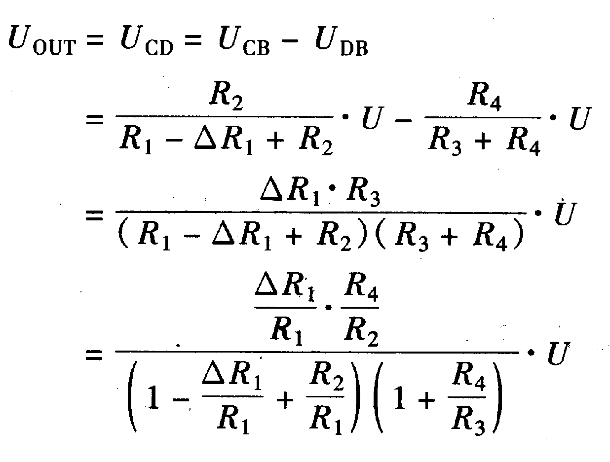 从式中可以看出,输出电压正比于应变片发生应变时产生的电阻变化量A们。