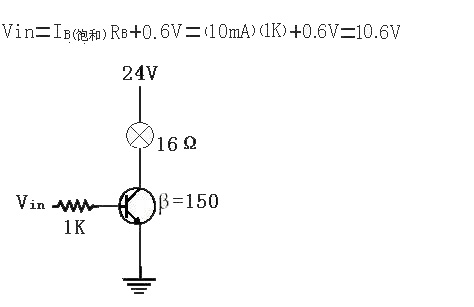 试解释出在图2的开关电路中,欲使开关闭合(三极管饱和) 所须的输入电压为何﹖并解释出此时之负载电流与基极电流值解﹕由2式可知,在饱和状态下,所有的供电电压完全跨降于负载电阻上,因此