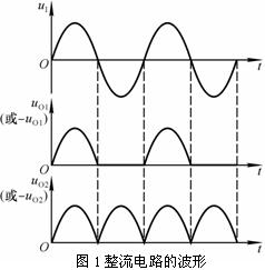 【解答过程】:当输入电压为正弦波时,半波整流电路的输出电压波形如图1中uO1所示,全波整流电路的输出电压波形如图1中uO2所示。