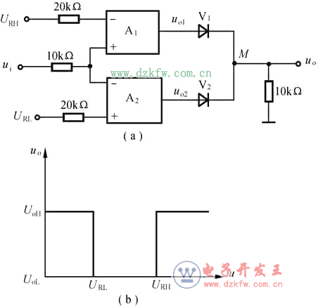 (a)窗口比较器;(b)传输特性