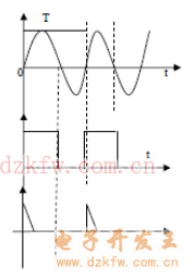 当输入信号Vi为一正弦波时,Vi每过零一次,比较器的输出Vo将产生一次电压跳变,输入Vi,输出Vo,经RC微分电路后的输出Vo’如下图所示: