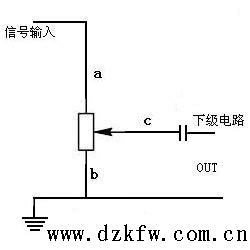 这是一种音频放大器用于音量控制的接法当电位器中心触头C滑动到电位器A时音量最大,当电位器中心触头C滑动到电位器B时音量最小,如果c点到B出现接触不良时就会出现音量关不死。