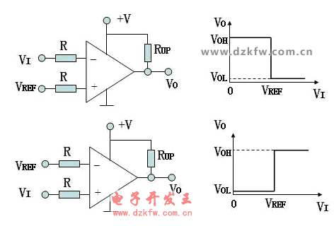 (1)、单限比较器:单限比较器很灵敏,但是抗干扰能力差。