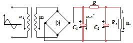 u2的正半周时:D1导通,D2截止,理想情况下,电容C1的电压: