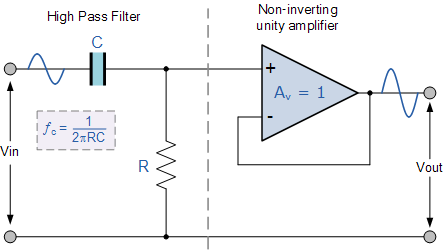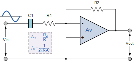 高电平的基本操作通过滤波器(HPF)与其等效RC无源高通滤波器电路相同,不同之处在于该电路具有运算放大器或包含在其设计中,提供放大和增益控制。