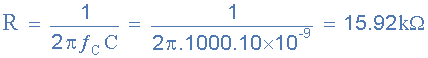 截止转角频率为 1kHz ,电容为 10nF ,值为因此, R 将是:
