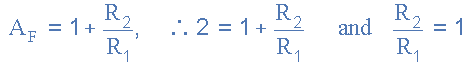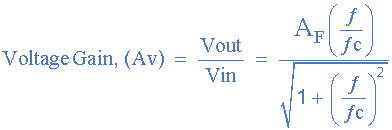 对于非反相放大器电路,其幅度滤波器的电压增益是反馈电阻( R2 )除以相应的输入电阻( R1 )值的函数,给出如下:
