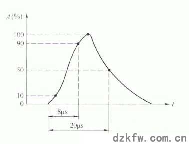 ③限制电压VC:对压敏电阻器施加规定的标准波形(8/20us)和规定的电流时(见图),压敏电阻两端的最大电压。