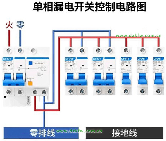 不相信看一看下图所示的2P漏电开关的接线图吧,三相空气开关和单相空气开关接线图