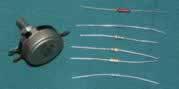 | 金属膜电阻 | 在真空中加热合金,合金蒸发,使 瓷棒表面形成一层导电金属膜。刻槽和 改变金属膜厚度可以控制阻值。这种电 阻和碳膜电阻相比,体积小、噪声低、 稳定性好,但成本较高。 |