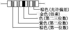 1)在电阻体的一端标以彩色环,电阻的色标是由左向右排列的,图 1的电阻为27000Ω±0.5%。