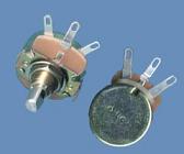 | 碳膜电位器 | 它的电阻体是在马蹄形的纸胶板上 涂上一层碳膜制成。它的阻值变化和中 间触头位置的关系有直线式、对数式和 指数式三种。碳膜电位器有大型、小型、 微型几种,有的和开关一起组成带开关 电位器。 还有一种直滑式碳膜电位器,它是 靠滑动杆在碳膜上滑动来改变阻值的。 这种电位器调节方便。 |