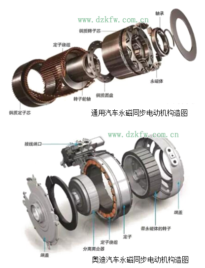 以下是通用汽车和奥迪的永磁同步电动机的构造: