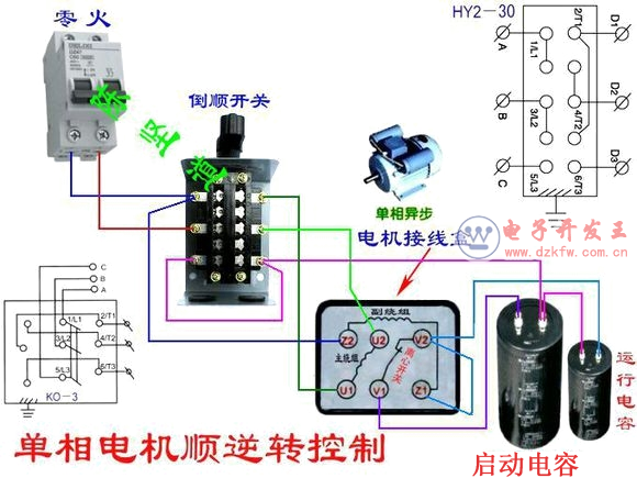 双电容单相电机正反转接线图