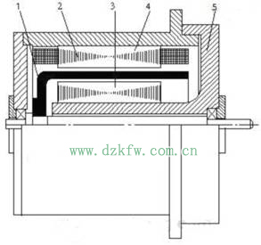 交流伺服电动机的转子通常做成鼠笼式,但为了使伺服电动机具有较宽的调速范围、线性的机械特性,无“自转”现象和快速响应的性能,它与普通电动机相比,应具有转子电阻大和转动惯量小这两个特点。目前应用较多的转子结构有两种形式:一种是采用高电阻率的导电材料做成的高电阻率导条的鼠笼转子,为了减小转子的转动惯量,转子做得细长;另一种是采用铝合金制成的空心杯形转子,杯壁很薄,仅0.2-0.3mm,为了减小磁路的磁阻,要在空心杯形转子内放置固定的内定子,如图2 所示。空心杯形转子的转动惯量很小,反应迅速,而且运转平稳,因此被广泛采用。