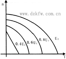图5 是伺服电动机单相运行时的机械特性曲线。负载一定时,控制电压Uc 愈高,转速也愈高,在控制电压一定时,负载增加,转速下降。
