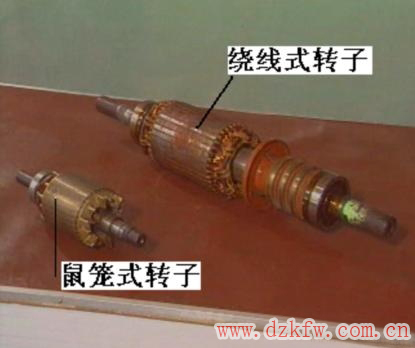 (1)鼠笼式转子:若去掉转子铁心,整个绕组的外形像一个鼠笼,故称笼型绕组。小型笼型电动机采用铸铝转子绕组,对于100KW以上的电动机采用铜条和铜端环焊接而成。如图2所示。