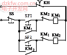 (2)停止过程。按下停止按钮SS,接触器KM1线圈断电,与SF1并联的KM1的辅助触点断开,以保证KM1线圈持续失电,串联在电动机回路中的KM1的主触点