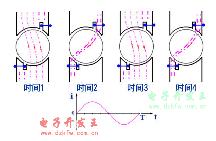 交流电流改变方向后,磁通同样由磁极的未罩部分向被罩部分移动这样转子就跟着磁场移动的方向转动起来。