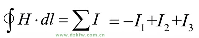 电流正方向不闭合回路上磁场强度的方向之间符合右手螺旋关系。