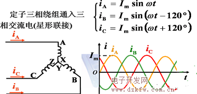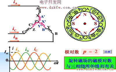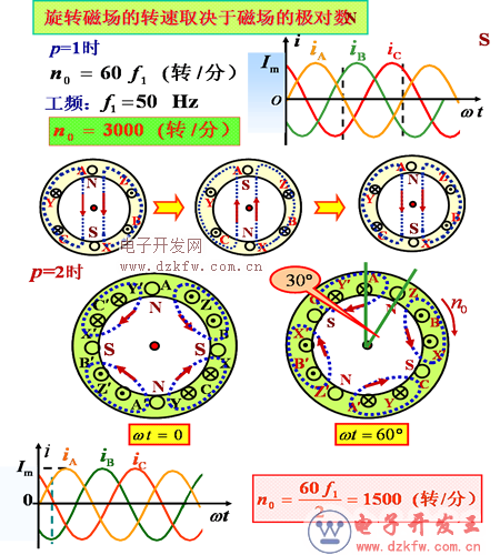 若定子每相绕组由两个线圈串联 ,绕组的始端之间互差 60 ° ,将形成 两对磁极的旋转磁场。