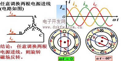 2 . 旋转磁场的旋转方向 (取决于三相电流的相序)