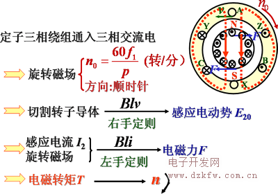 由前面分析可知,电动机转子转动方向与磁场旋转的方向一致,但转子转速 n 不可能达到与旋转磁场 的转速相等,即 n<n0→ 异步电动机