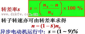 因此,转子转速与旋转磁场转速间必须要有差别。 旋转磁场的同步转速和电动机转子转速之差与旋转磁场的同步转速之比称为 转差率。