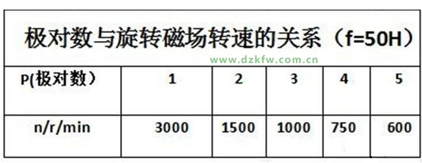 三相异步电动机的极数一般有2、4、6、8、10极几种。它们对应的同步转速为3000、1500、1000、750、600r/min。由于转子速度比同步转速约低2%~5%,因此上述各种极数的三相异步电动机的实际转速为2900、1450、960、740、580r/min。见下图表所示。