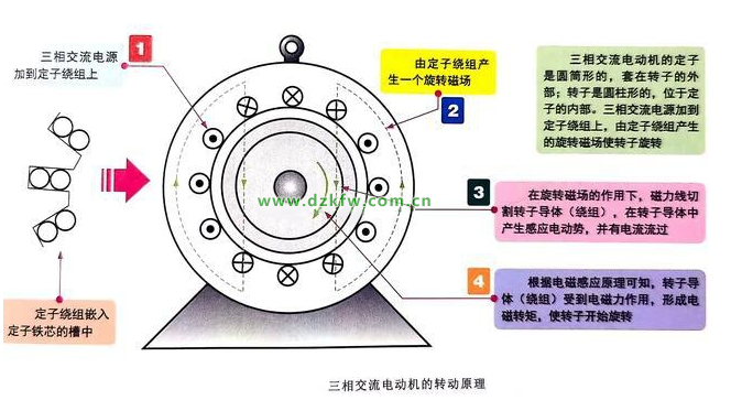 从上面标注的数值来看,三相异步电动机的转子旋转速度不会与旋转磁场同步或者超过旋转磁场的速度。如果转子旋转速度与旋转磁场同步,即转子速度等于旋转磁场速度,转子导体与旋转磁场相对静止,就不会切割磁力线,因此不能产生感应电动势,也就没有感应电流,转轴上就没有了电磁转矩,于是电动机就不会旋转了。