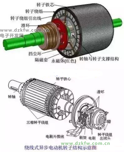 转子按结构的不同分为鼠笼式转子和绕线式转子二种: