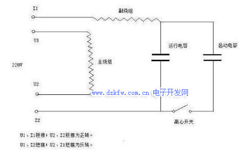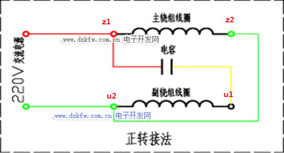 Z1和U1用连接片连接起来,再把Z2和U2用连接片连接起来,用导线分别接入到控制开关的火线和零线上去,就是正转。