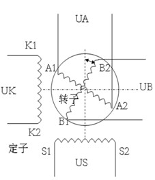在定子上有激磁绕组和辅助绕组,它们的轴线相互成90°。在转子上有两个输出绕组——正弦输出绕组和余弦输出绕组,这两个绕组的轴线也互成90°