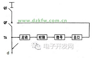 所谓定时限过电流保护是不管故障电流超过整定值多少、其动作时间是一定的。若动作时间与故障电流成反比变化,即故障电流超过整定值越多,动作时间越快,则称为反时限过电流保护。下图所示是过电流保护的方框图。图中启动、时限、信号、出口各个环节分别是电流继电器、时间继电器、信号继电器、中间继电器。