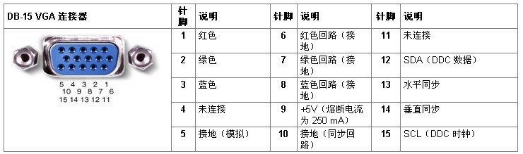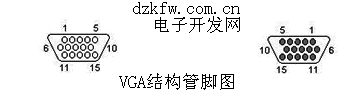 二、DB15(VGA接口)如下图,在电脑上采用母头(孔型),所以在我们的自己设计的板子上也推荐使用与电脑上管脚排列一致的母头(孔型),这样用常用的双公头VGA线就可以方便的连接到电脑或显示器上